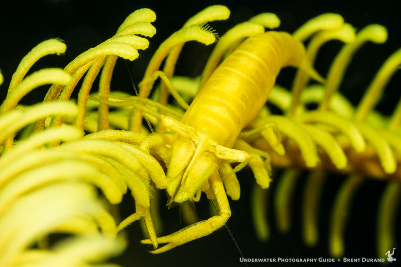 Shooting a crinoid shrimp is often a fast endeavor since the crinoid continues to move its arms once disturbed. By placing the focus point precisely where I wanted it in the frame, I could press the shutter the second everything looked right.