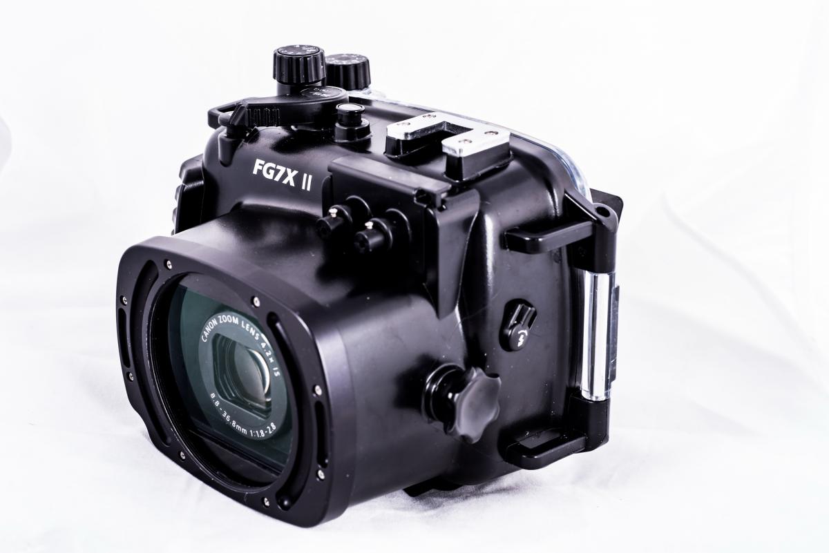 This tiny housing fits the G7X II like a glove. The material is vey high quality, you will even think it is an aluminum housing. Easily fits in your BCD pocket.