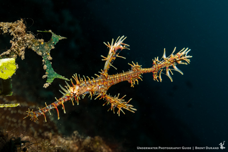 An ornate ghost pipefish poses for a portrait with the Fantasea G7XII housing in the Lembeh Strait, Indonesia. ISO 125, f/8, 1/200. Shot with a single SeaLife Sea Dragon flash. Photo: Brent Durand