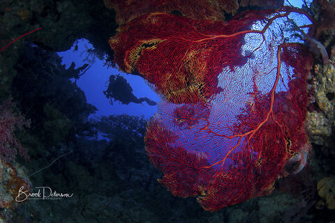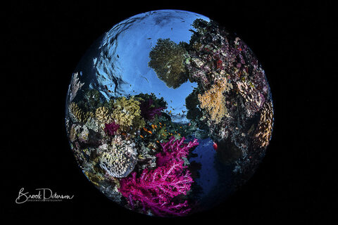 At the 15mm end of the 8-15mm fisheye lens, the frame is filled, has great depth of field, and the lens makes exceptional underwater images. Because there are very few straight lines in underwater photography, a fisheye lens works well to capture close focus wide angle photography.