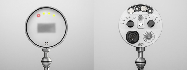 - There are nine power settings on the the back of the strobes, all easily chooseable with the large, smooth dial. The flashes take electronic or fiber optic sync cables (both Inon style mount and S&S style mount), and have corresponding settings based on which you are using. The dial that activates the strobe has several different notations. OFF, ON (the setting to use with electrical sync cables), STTL, SL (the setting to use with fiber optic cables), and SOS. An easily pushable pilot light is centered in the back of the strobe, with multiple power settings. The battery compartment (sealed off from the rest of the strobe) is a screw in/screw off, with perfectly decipherable instructions inside the battery compartment as to how to load the batteries