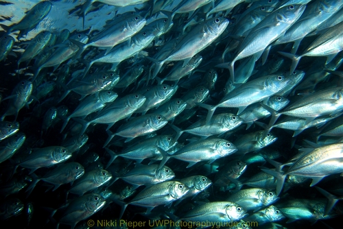 One of the most popular dive sites there would have to be Barracuda Point. Each morning you can see the chevron barracuda forming their massive spiraling schools off the reef. I’ve swam among them many times, and am always amazed at how close they let you get to them. You’ll also see schooling big-eye trevally pouring over the reef in the shallows and in the deep. The occasional tuna will swim by and we’ve seen zebra sharks, manta rays, and even a hammerhead swim by off the walls at both Barracuda Point and South Point.