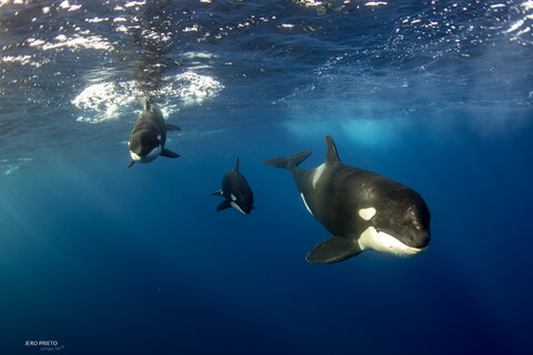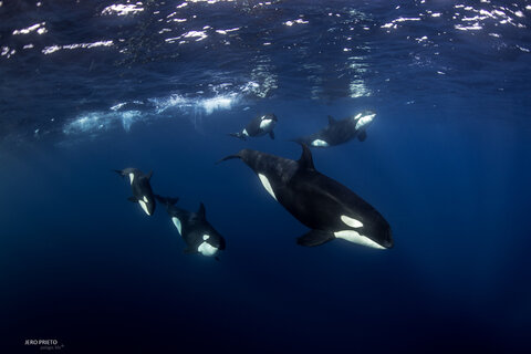 We recently caught up with underwater photographer and Pelagic Life board director Jero Prieto after spotting his fantastic photo of two orcas under the surface, bathed in late afternoon light. In-water encounters with orcas (aka killer whales) are fairly rare, and natually, we wanted to share the photos and ask what went on behind the scenes. Below is our brief interview.