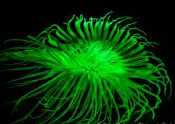 Cerata - The Cerata can contain nematocysts absorbed while feeding on hydroids. These nematocysts cells are stored within the Cerata and fire off with the slightest touch, defending the slug against would-be predators in the same fashion as a stinging jellyfish. The Cerata also function similarly as the gills on a Dorid and can be very colorful. The Cerata of Phylodesmius nudibranchs also produce food through photosynthesis.