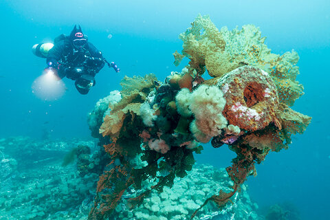 We planned our dives so we could capture the more iconic areas of the wrecks: the bow, the stern guns, torpedo damage, anchor, and so on. We were using open circuit, so bottom time was fairly limiting, though the wrecks are in recreational limits. We always had a rough idea of where we were going, and to what end. Jill would give us a good idea of what to expect on the wrecks, and what could be of interest. One of the wrecks had an intact Marconi room, one had some old vinyl laying on the deck, some had ammunition boxes, one an old shoe. All great visuals for a video.