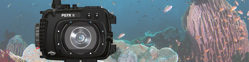 The Fantasa FG7X II housing was designed for style, durability, full camera control and ease of use. It's also a scaleable housing; great to take as a compact snorkeling setup or maxed out with various strobes and video lights. The controls are clearly labeled, the double o-ring adds security and the 200ft (60m) depth rating combine to make it a great all around housing.