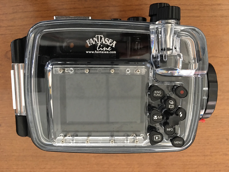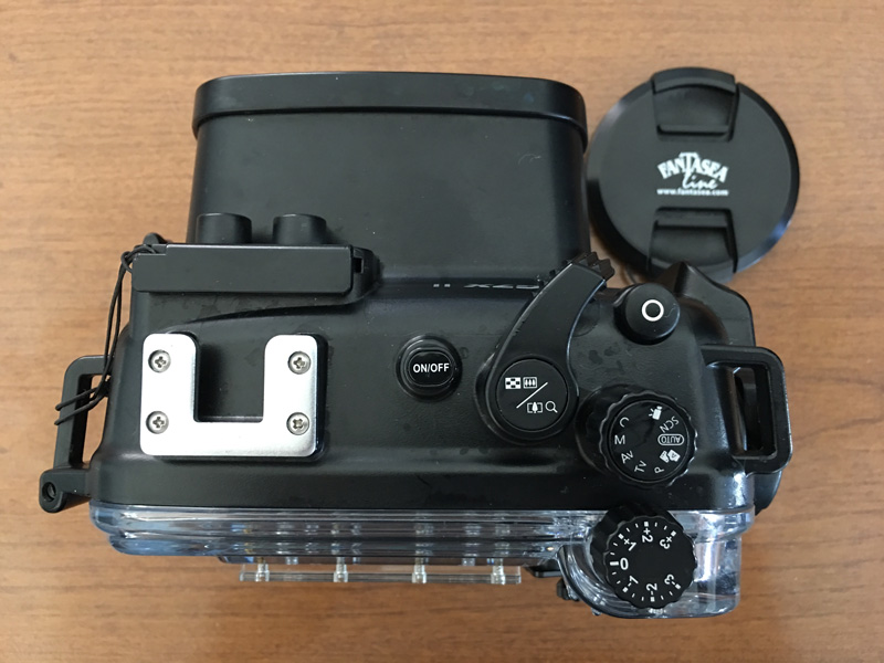 The FG7X II is another solid housing from Fantasea. It feels solid in your hands and is easy to hold with ergonomic finger and thumb grips. The top of the housing has a built-in cold shoe mount for accessories like a focus light or GoPro.