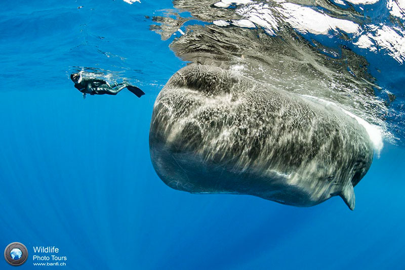 A note from the Editor: I met Franco Banfi on an iceberg diving trip in East Greenland. It’s not often I get to sit down and talk with a professional underwater photographer, and it was a lot of fun. Franco was really open about sharing his experiences and amazing photos from freediving with sperm whales, so I pulled out my smartphone and recorded our kitchen table conversation. I really enjoyed everything he shared, especially about sperm whale behaviors, and I hope you do too! – Bryan Chu (Associate Editor)