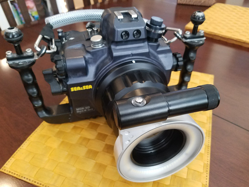 Attaching the light to a port was as simple as threading it onto the M67 thread of my Sea & Sea Marco port. Once it is mounted, the entire unit can spin freely, which can be useful in the event you need to get the battery holder out of the way of any obstacles. I did not test it, but I could see using the ring light on a flip adapter to give you more lighting options during a dive.