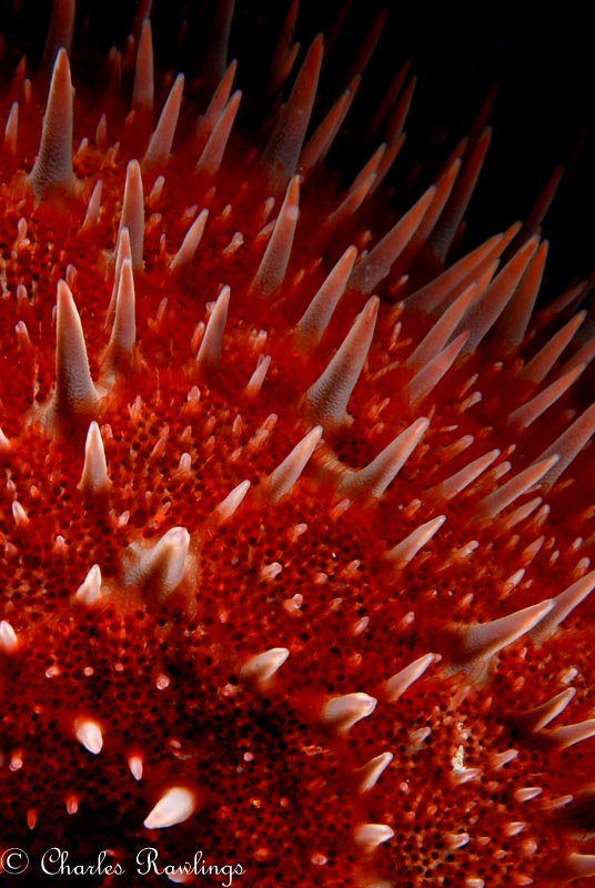 Crown of Thorns Starfish. Acanthaster planci. Swanee Reef. Nikon D80 with dual strobes, 60mm macro lens. 1/200 sec, f/22, ISO 100.