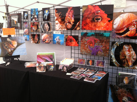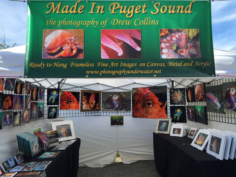 My business is flourishing. With almost 1000 dives completed, with new images added monthly, and my unique artwork exclusively from the Puget Sound, I have received tremendous reviews from individuals, organizations and professional photographers alike. Since my first ‘Market’ in March of 2014, my underwater frameless, ready-to-hang, giclée fine art images printed locally on metal, canvas, acrylic, mat prints, coasters and the incredibly successful 4”x6” note cards, have all been selling at an ever increasing rate. When I am approached and asked by budding artists for advice, I encourage them to take a leap. Put your work out there for people to see, critique and perhaps even enjoy. With the many major local art shows, festivals, and speaking engagements to local groups upcoming in 2016, I am looking forward to a fabulous year!