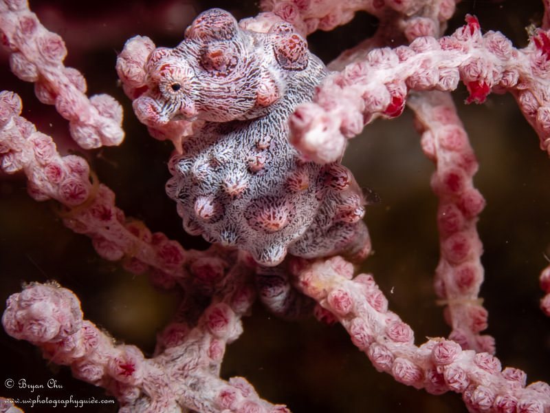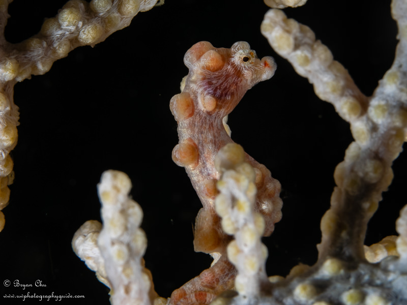 Bargibanti pygmy seahorse. Olympus OM-D E-M1, Olympus 60mm macro lens, Nauticam housing, 2x YS-D1 strobes. f/16, 1/320 sec, ISO 200.