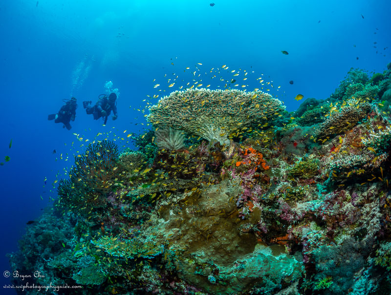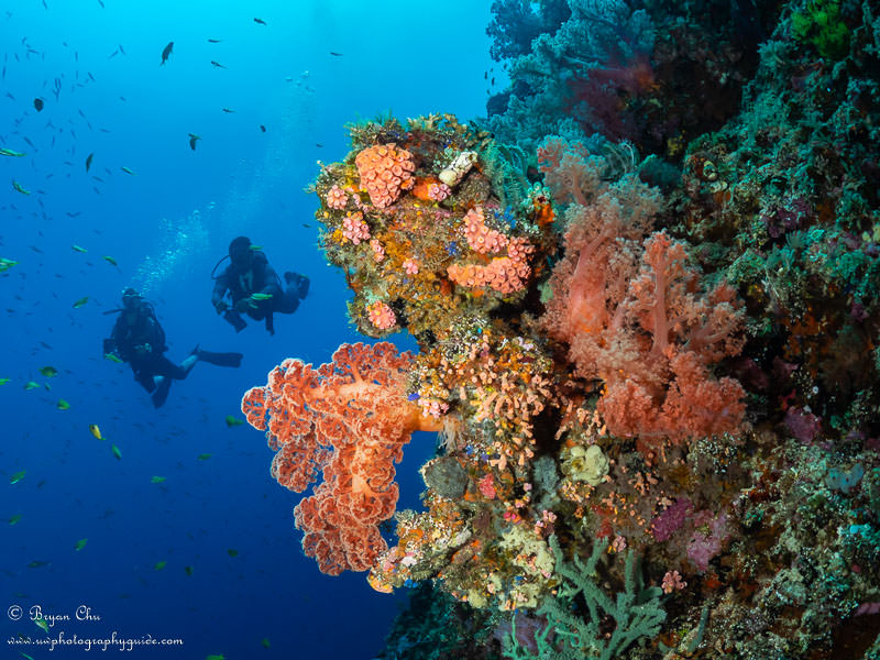 The wall at Kalanggaman. Olympus OM-D E-M1, Olympus 8mm fisheye lens, Nauticam housing, 2x YS-D1 strobes. f/7.1, 1/250sec, ISO 200.