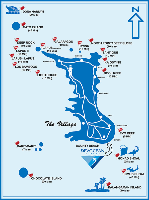 Note that Capitancillo is not shown on the map, but is to the South of Malapascua Island, further than Kalanggaman.