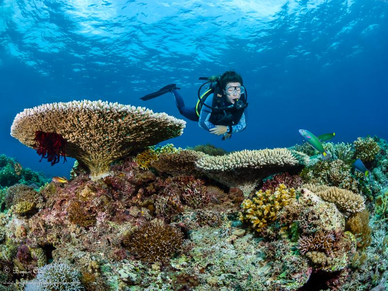 The plateaus are where the really good stuff happens; beautifully clear, shallow water packed full of fantastically healthy table corals, and lots of fish. We typically spent the last 20-30 minutes of each dive just taking it in. It was just spectacular.