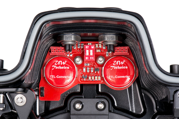 • Remove the LED flash trigger in new D5 and D500 housings and replace it with this TTL converter