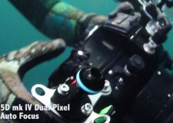 The top LCD screen was clearly viewable through the housing, which was nice. I never had to access the "info" button to see the settings on the back of the camera. As I mentioned above, the light meter was also visible in the top LCD screen. I found this to be a nice feature while I was cruising through the various light conditions of the kelp forests. I could easily look down and adjust the settings for the changing ambient light conditions. This way I could be ready for "the shot," should something interesting decide to visit.