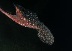 Silky shark checking out our RIB at night. Photo © Aude Abel, all rights reserved.