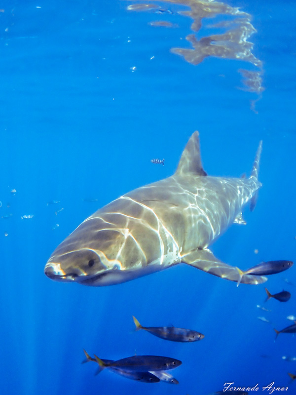 The FCON-T02 really shines underwater at a “standard” fisheye field of view. This is when the optical properties of the lens are the best, and the camera chooses the best settings underwater. We took the FCON-T02 cage diving on the Socorro Vortex with great white sharks and kept it at its fisheye field of view. It was perfect for photographing the sharks as they came in close to the cage. The lens really captured the dynamic range well at this field of view as you can see with the sun rays in the shark images.