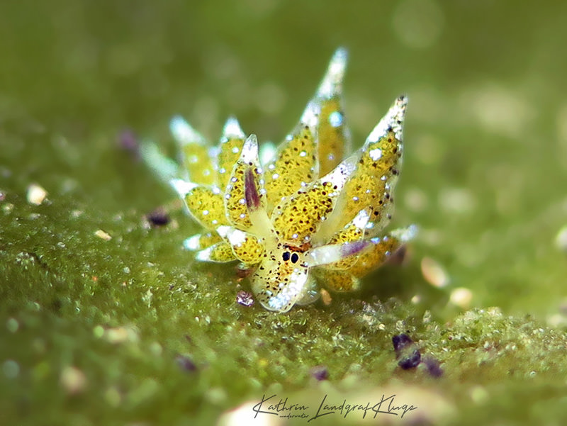 Focusing was initially the most challenging aspect of shooting with a diopter. You don’t have a huge depth of field with this setup, especially when zooming in to photograph the super tiny critters. So you have to focus really well. I remember one occasion during my first dive with this setup.... I was trying to get a picture of one of my favourite critters, a tiny Shaun the Sheep nudibranch. There was quite a surge and it was pushing me back and forth continuously… it was almost impossible to get this tiny critter into focus. My dive guide had a slate with him and wrote onto it ‘RELAX’! I laughed so hard that my mask flooded. I handed over my camera to let him try himself. And he had the same problems…. After the dive he told me that is was so difficult to get the tiny sheep nudibranch into focus because of the surge. But with enough practice I got better and became more relaxed with shooting super tiny critters. Sometimes you just have to be a bit patient!