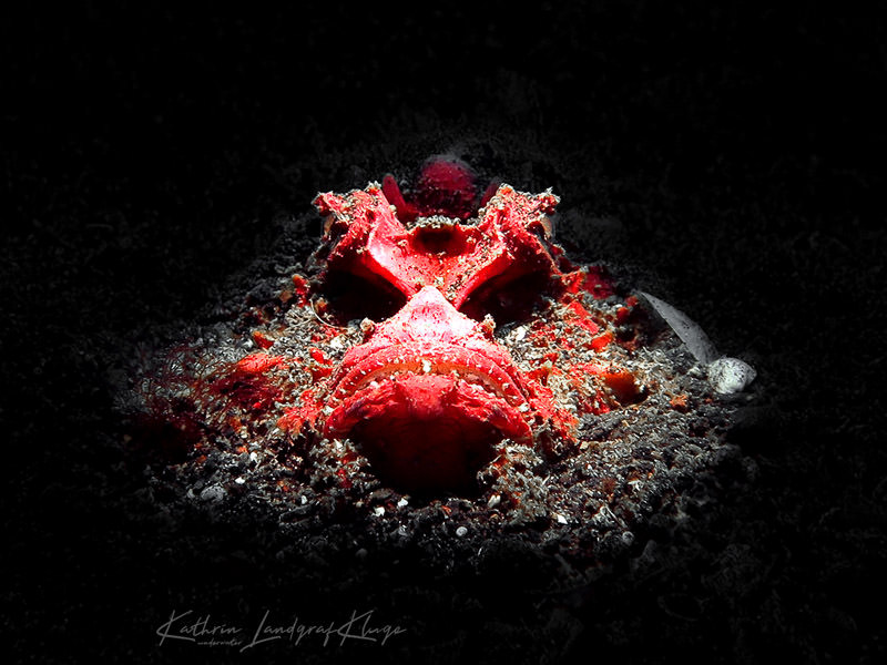 For snoot pictures, I usually want a bright object with a dark background. Depending on the snoot you are using, this works both for macro and super macro critters. On my first diving day with a snoot, I took my favorite snoot photo – A Red Devil Scorpionfish – I called it Darth Vader. Actually, it earned an Honourable Mention in the Through Your Lens photo contest of Scubadiving Magazine in 2018.