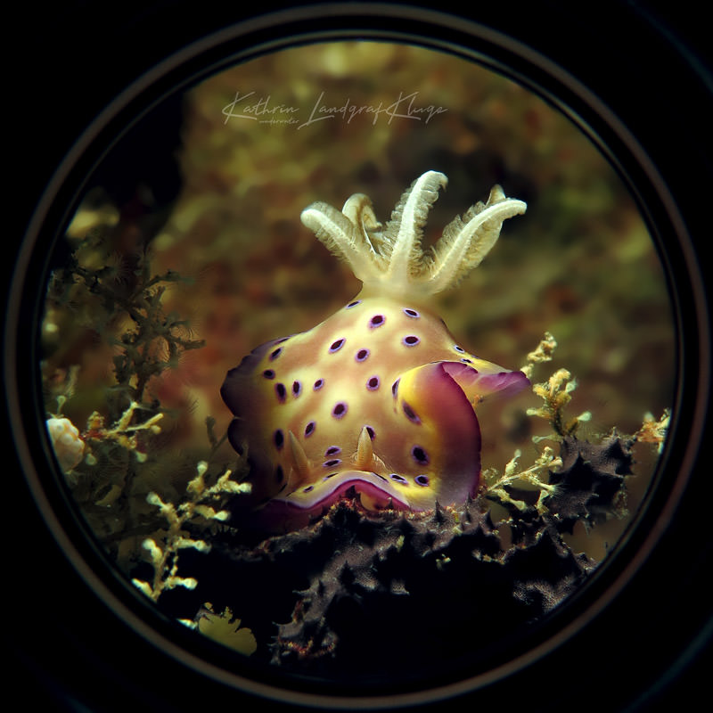 Some of my experimental shots also happened accidentally at first, providing me with new ideas for photo composition. I took a shot of a Goniobranchus kuniei with my super macro camera setup, but without zooming in. The pic was taken in Menjangan Island, Bali in a place with quite strong current and I was just too lazy to screw off the 15+ super macro lens. But it turns out that I really liked the “porthole” effect - as some people called it - and I sometimes shoot like this on purpose now.