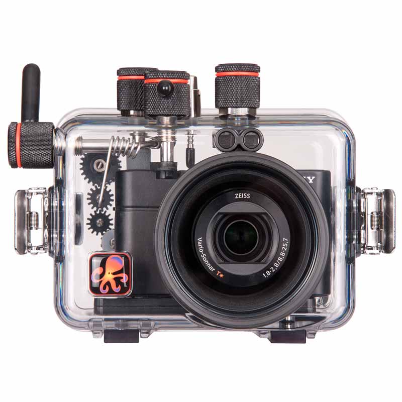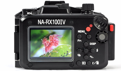 Housing material: Compact aluminum housing with aluminum port. Port has a quick-adapt system for using standard 67mm wet lenses. Smallest housing for the RX100 IV.
