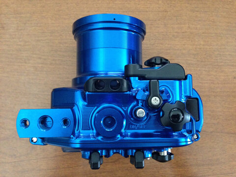 "The colors are definitely a fun breakaway from the traditional black housings, and this housing performs well overall. All camera functions are accessible and easy to use. Personally, I am not a fan of the housing latch, as I feel it is very easy to undo. The controls are nice to manipulate and well positioned, and the shutter lever is very sensitive. I like the more secure M10 mount, but one downfall for the Acquapazza housing is that accessories such a monitor hood or diffuser can be difficult to get, or are not available. "