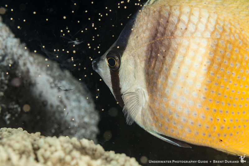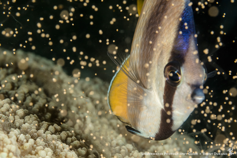 I resorted to trying to guess where the coral would spawn next and pre-focus on the coral, knowing that the fish would be in the same plane of focus if everything worked out. This technique delivered most of the shots in this article.