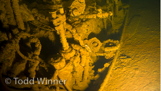 If you go inside a wreck, for good photographs you must have excellent buoyancy control and be able to control your breathing. Kicking the sides of the wreck or having your bubbles rise up and dislodge silt can quickly ruin an area for photography. Some artifacts like skulls, toolboxes and lanterns are located deep inside wrecks. Guides can bring you inside to find them, inquire at the resort or boat. Of course this is at your own risk because you will be dependent on the guide to bring you out.